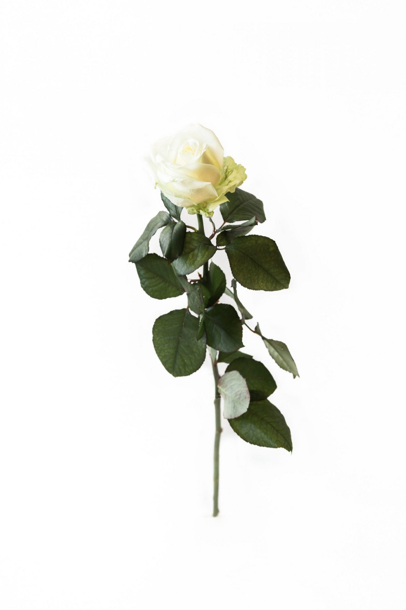 Valkoinen n. 70 cm pitkä, isokukkainen ruusu. Tyylikäs ja ajaton.