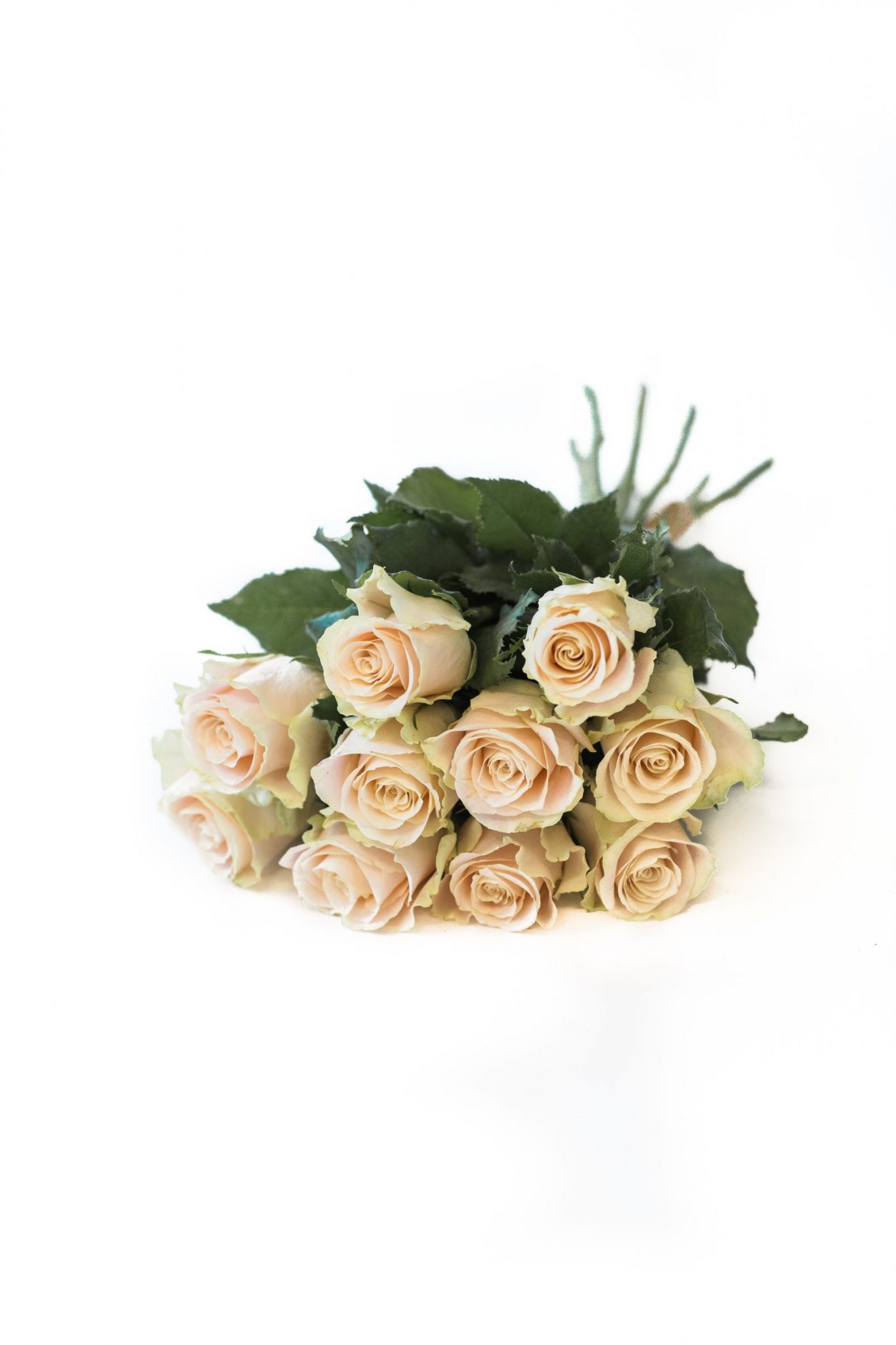 Kaunis ja elegantti kimppu sidottuna samppanjansävyisistä ruusuista. Kestävä, kaunis lajike, joka sopii sävynsä vuoksi moneen tilanteeseen.