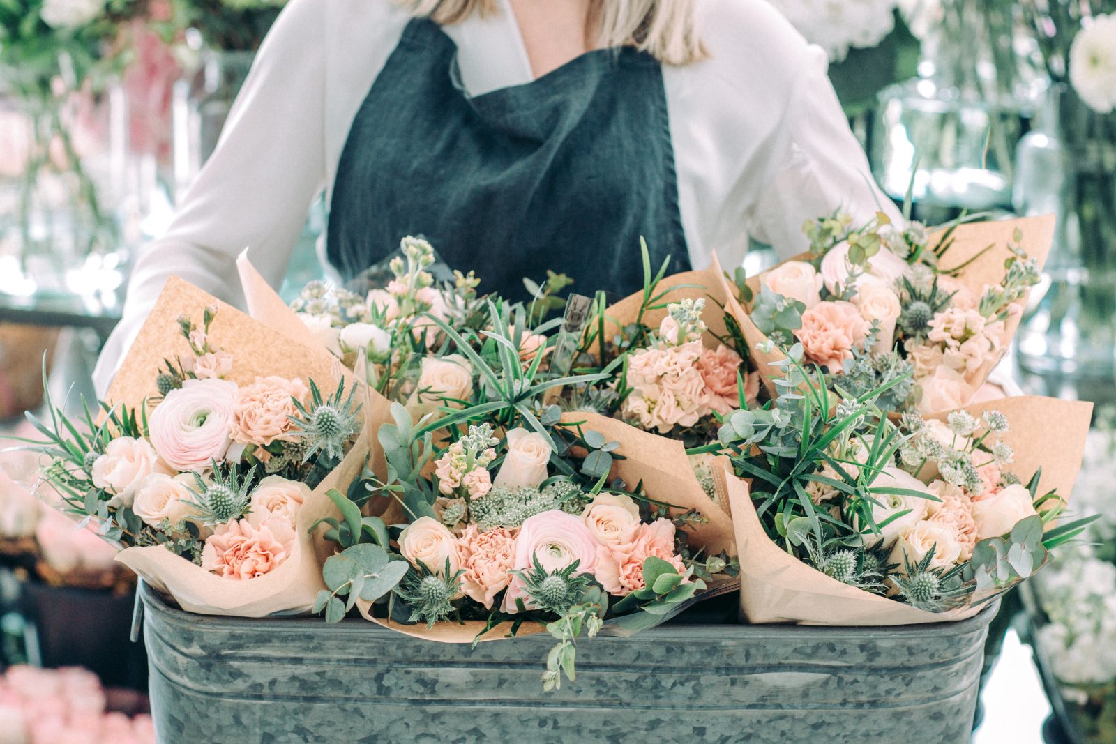 Kimppuja ei varastoida vaan ne tehdään aina tilauksesta. Floristi valitsee kauneimmat kukat juuri sen hetkisestä valikoimasta. Jokainen kimppu on uniikki juuri sinulle tehty.